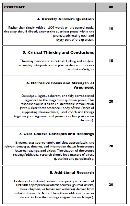 The module essays will be graded according to the following criteria: